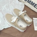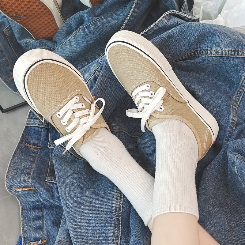 These classic beige canvas shoes combine minimalist design with high-quality craftsmanship, making them the perfect go-to choice for everyday wear. The upper is crafted from premium canvas material, offering breathability and lightweight comfort for extended wear. The classic lace-up design is accented with delicate black trim, adding a touch of sophistication to the overall look. The outsole is made from durable, anti-slip rubber, providing excellent traction and stability for worry-free walking. The soft, comfortable lining conforms to your feet, ensuring a lightweight and relaxed wearing experience. Whether for casual outings, campus style, or daily commutes, these canvas shoes pair effortlessly with any outfit, delivering timeless style with ease.