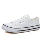 These classic white low-top canvas shoes are crafted from premium canvas material, offering lightweight and breathable comfort for all-day wear. The durable rubber sole is designed for excellent grip and wear resistance, making them suitable for various occasions. With a simple and versatile design, they pair effortlessly with jeans, shorts, or casual dresses, showcasing your sense of style. The clean silhouette and comfortable performance make these shoes the perfect choice for daily casual wear, travel, or light activities. Let these classic canvas shoes become your go-to wardrobe staple, adding a touch of fashion and confidence wherever you go!