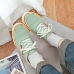 With its modern design and exceptional comfort, these two-tone canvas shoes are a versatile addition to your wardrobe. The elegant sage green with a pop of orange ensures you stand out with understated style.