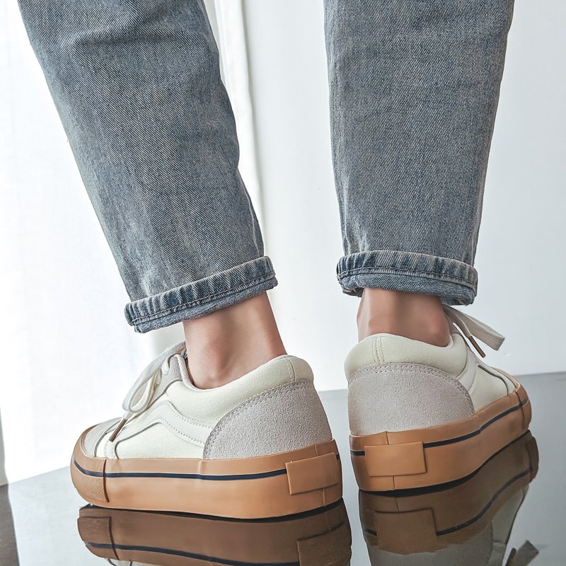 Retro color matching, fashionable and versatile: beige canvas and suede splicing design, with classic caramel color outsole, showing the retro literary atmosphere, suitable for multiple occasions.