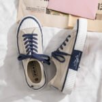- Two-Tone Design, Unique Style: The classic beige canvas upper paired with a beige toe cap and blue thick sole creates a bold, fashionable look for trendsetters.