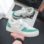 These trendy casual sneakers feature a classic white base accented with refreshing mint green panels, creating a clean and vibrant look. Made with premium synthetic leather and suede materials, the upper is soft, breathable, and durable, ensuring long-lasting comfort for all-day wear. The sturdy rubber outsole provides excellent grip and wear resistance, making them perfect for any occasion. Whether for daily commutes, casual outings, or stylish streetwear, these sneakers are your perfect choice.