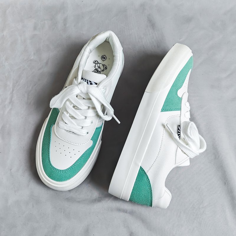 These trendy casual sneakers feature a classic white base accented with refreshing mint green panels, creating a clean and vibrant look. Made with premium synthetic leather and suede materials, the upper is soft, breathable, and durable, ensuring long-lasting comfort for all-day wear. The sturdy rubber outsole provides excellent grip and wear resistance, making them perfect for any occasion. Whether for daily commutes, casual outings, or stylish streetwear, these sneakers are your perfect choice.
